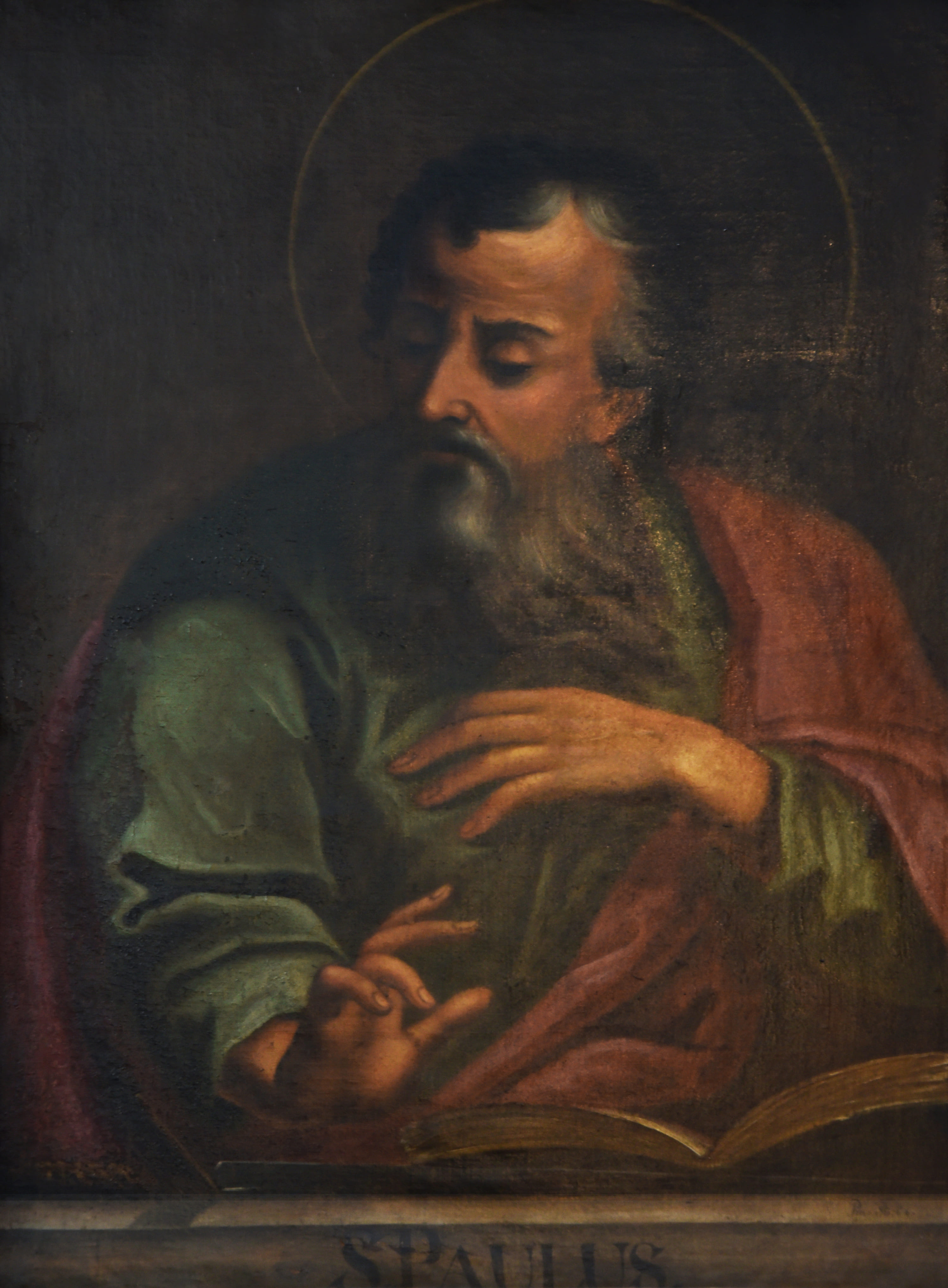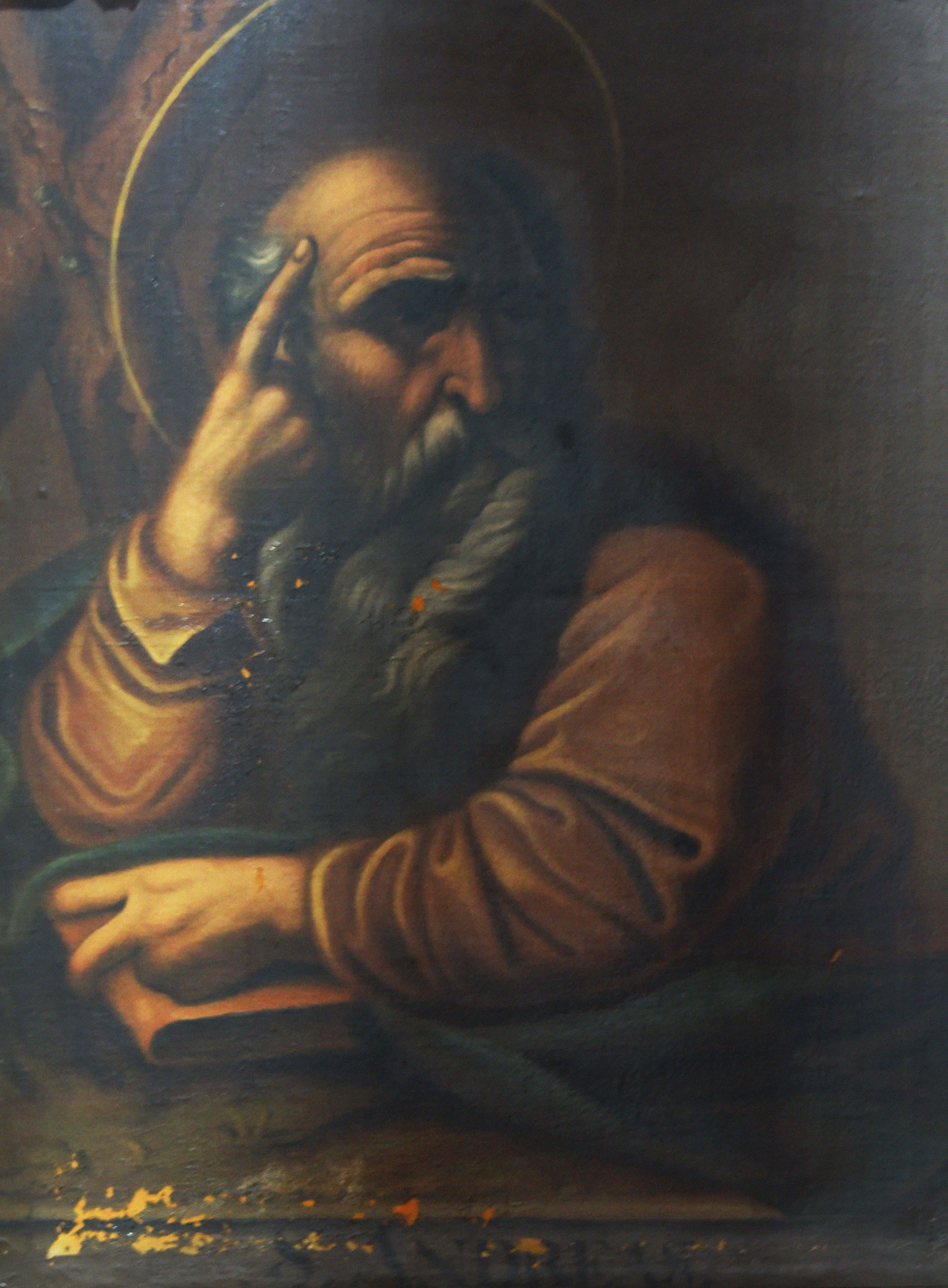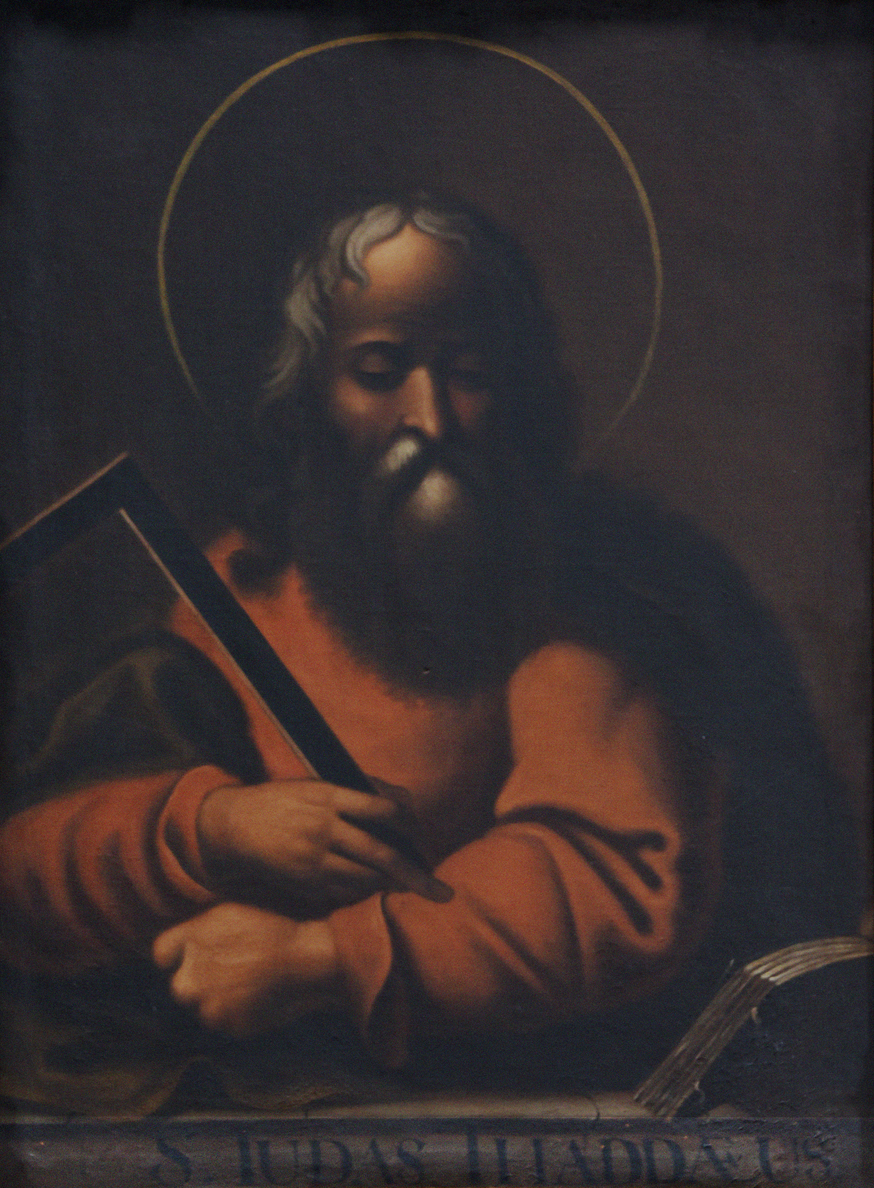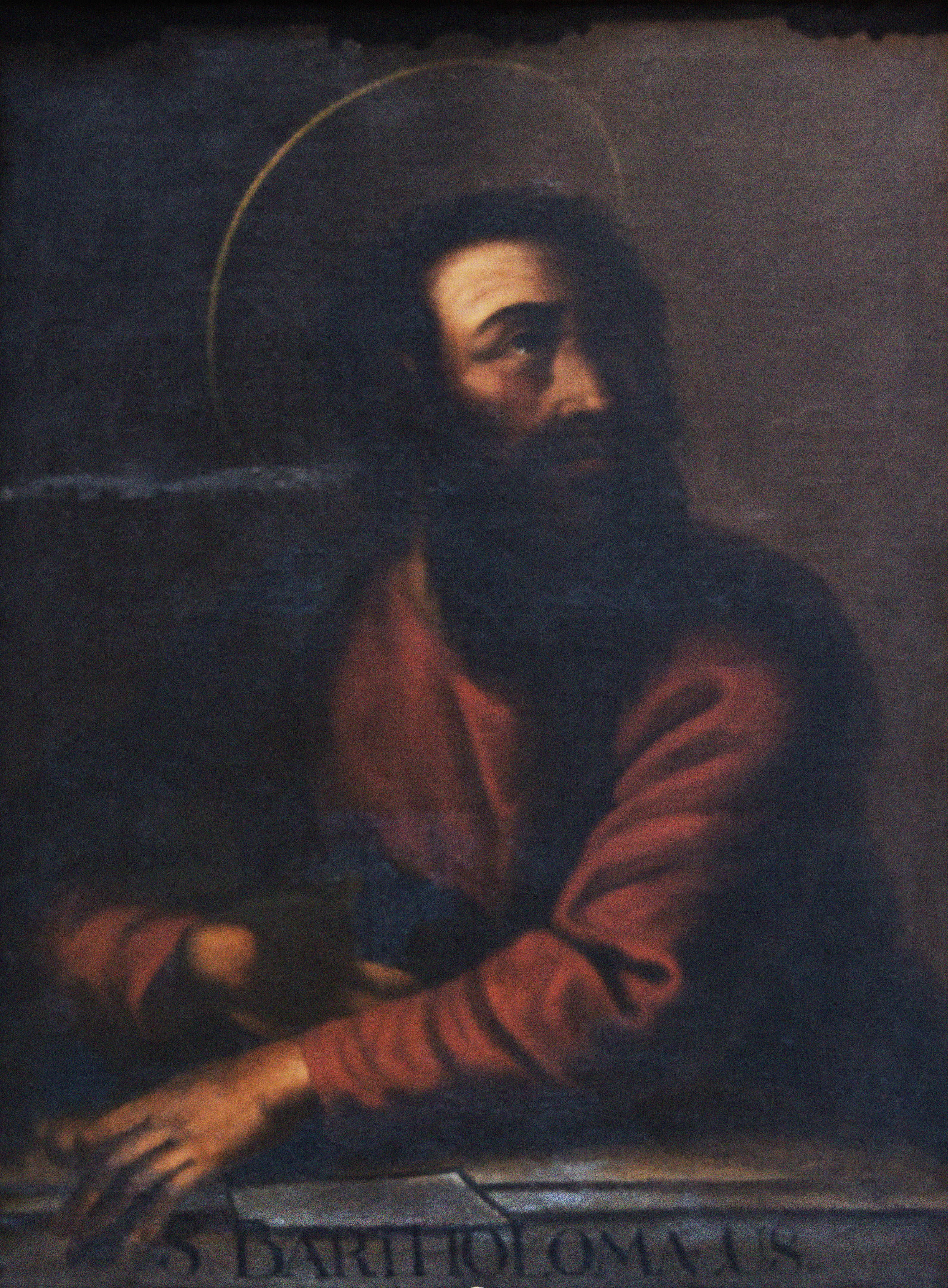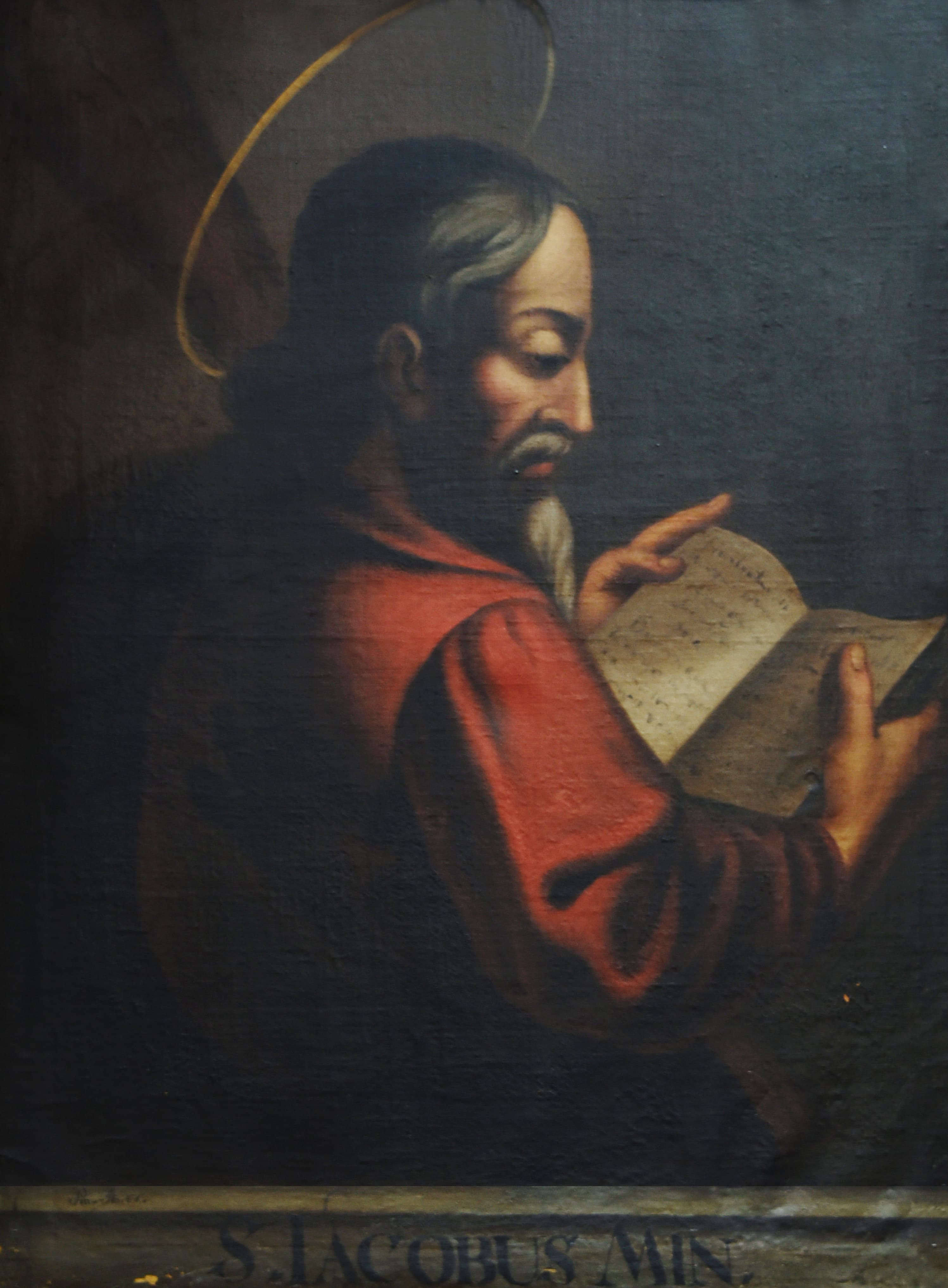 El Apostolado es un conjunto de 14 pinturas en óleo sobre tela, que se encuentran distribuidas en el sector norte de la Sacristía. Representa retratos de cada uno de los doce apóstoles, más Cristo Salvador y la Virgen María. Cada pintura está rodeada de un marco de madera policromado, imitando mármol adornado de rocallas talladas y doradas. Los retratos son de medio cuerpo en diferentes posturas, y llevan todos un fondo oscuro a excepción de la Virgen y Cristo.