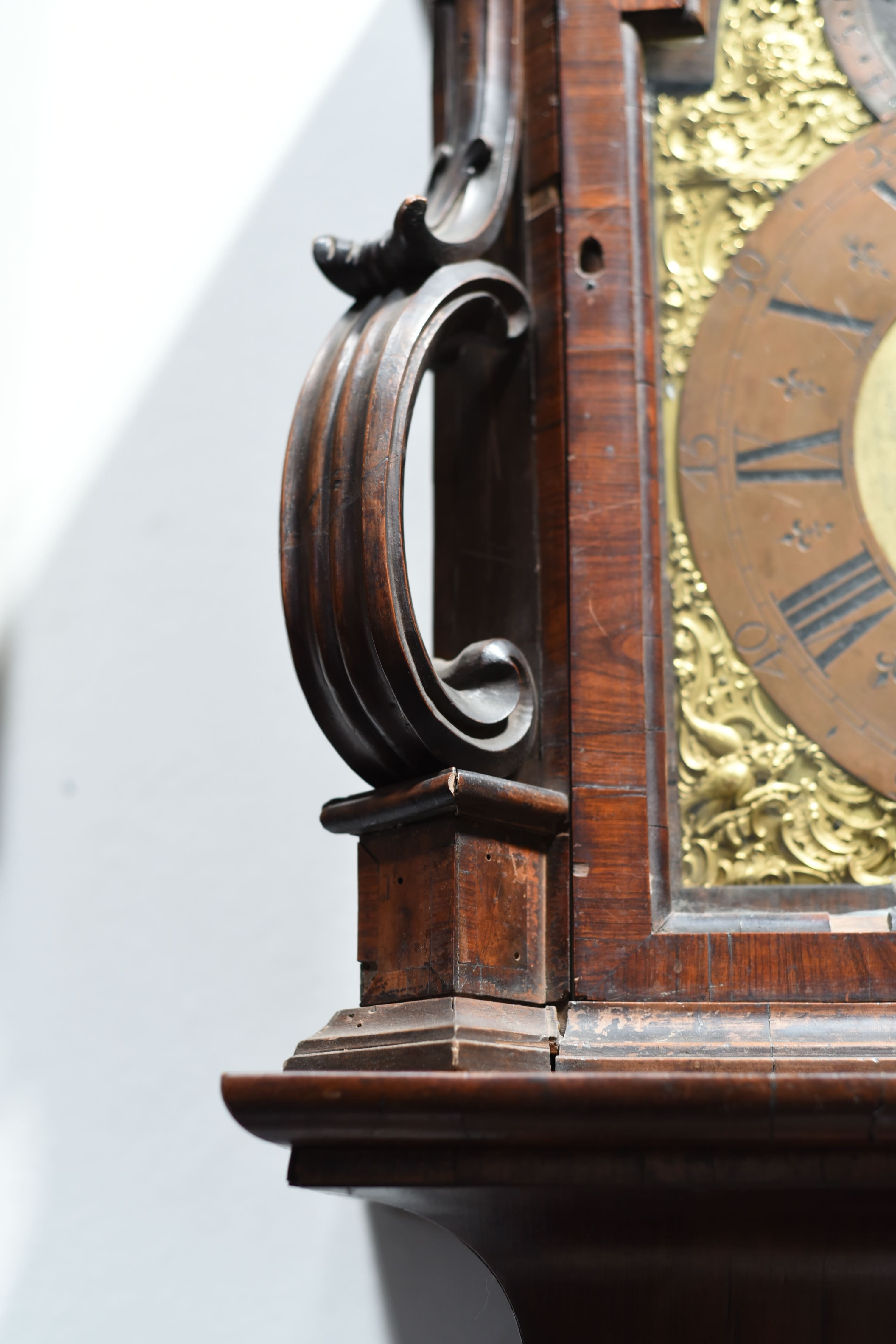 El mueble de este reloj está fabricado en madera de caoba y tiene aproximadamente 210 centímetros de altura. Posee ornamentos de formas simples y un remate dorado en su extremo superior.