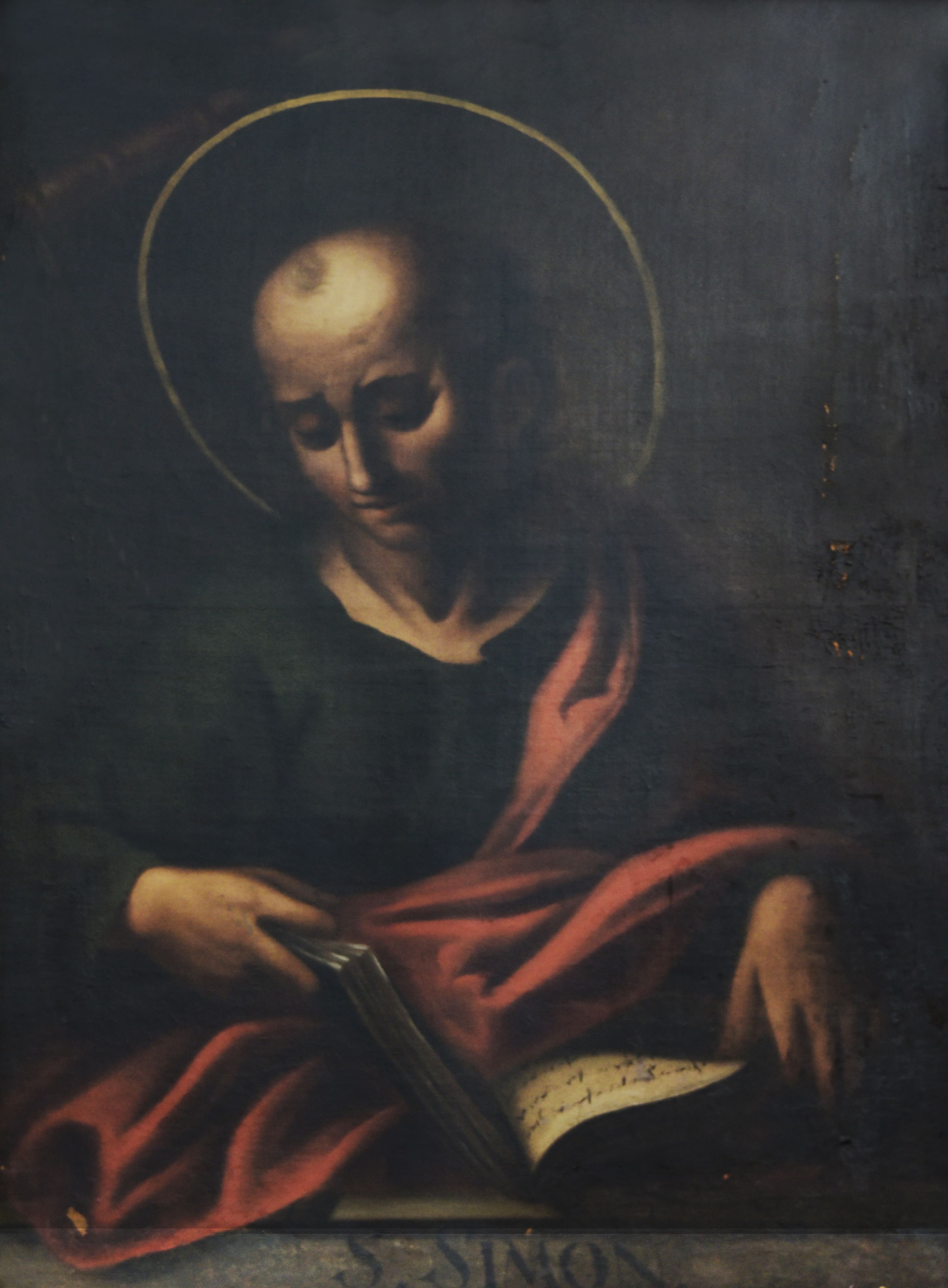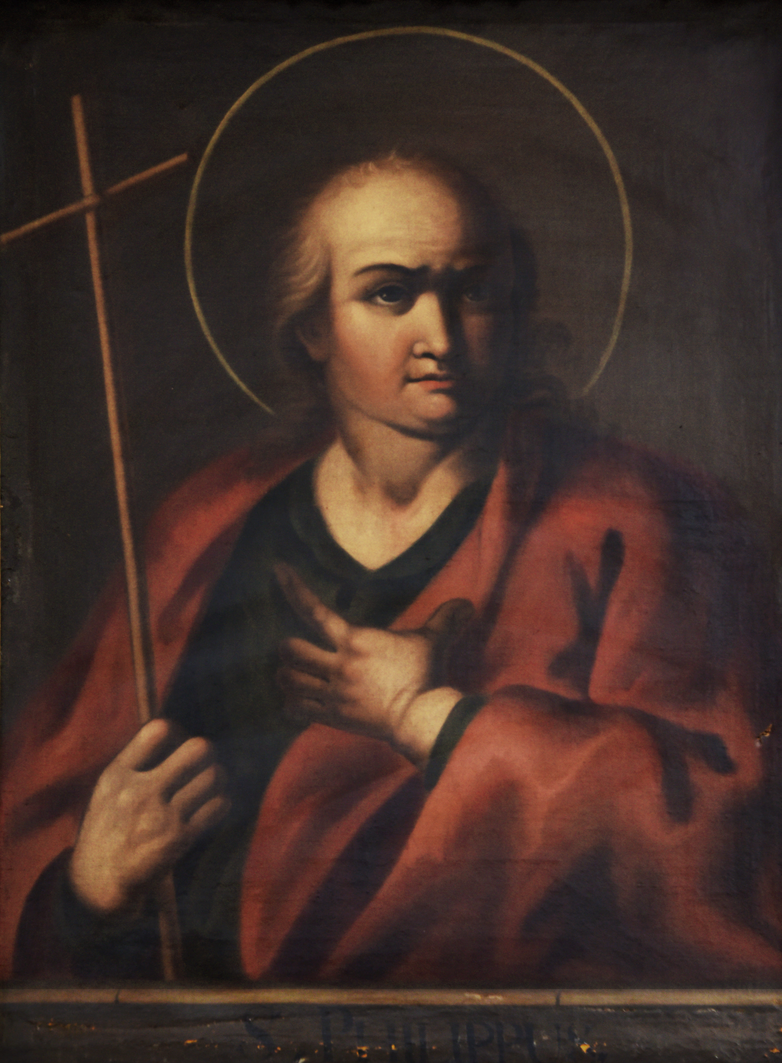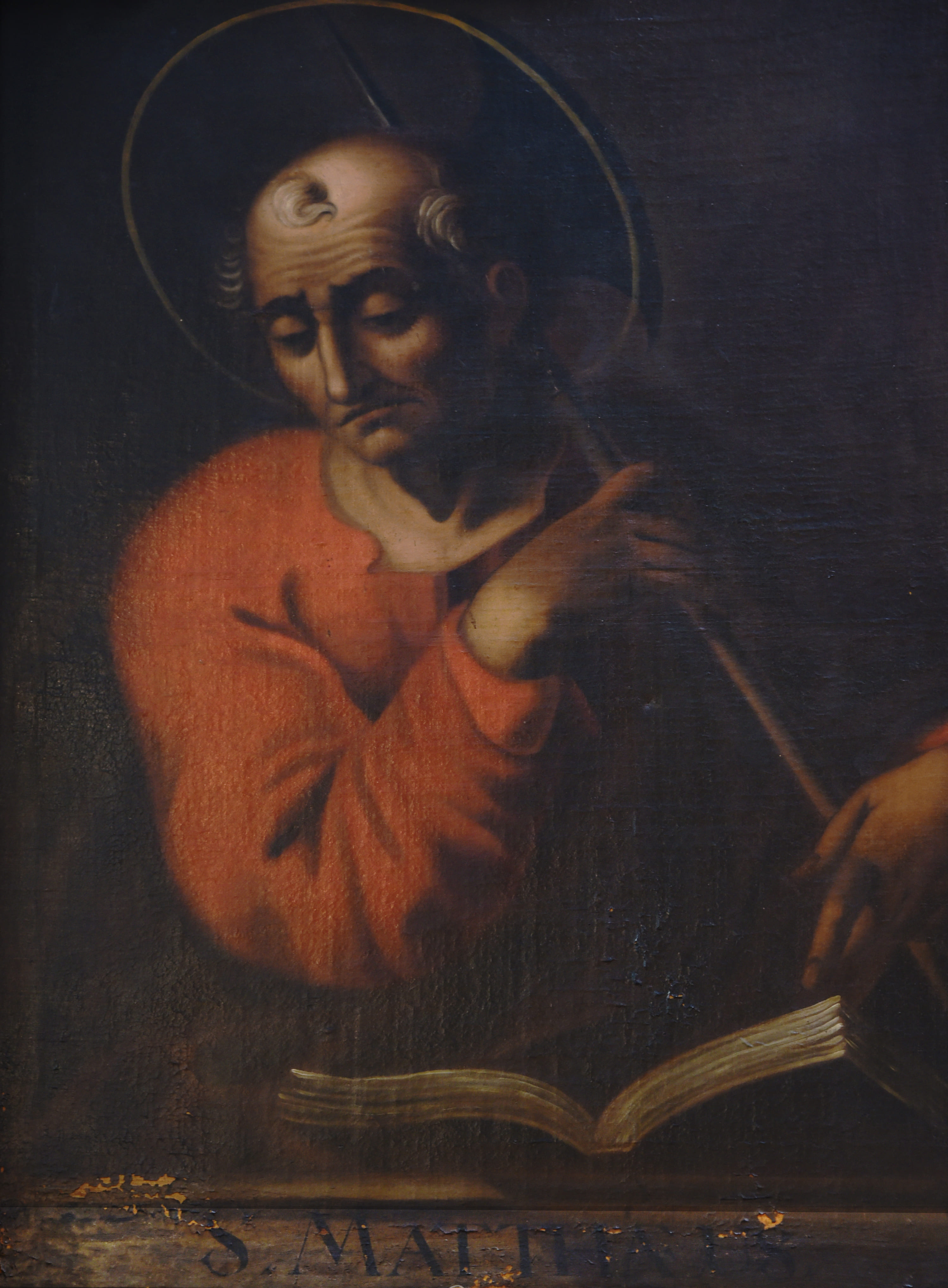 El Apostolado es un conjunto de 14 pinturas en óleo sobre tela, que se encuentran distribuidas en el sector norte de la Sacristía. Representa retratos de cada uno de los doce apóstoles, más Cristo Salvador y la Virgen María. Cada pintura está rodeada de un marco de madera policromado, imitando mármol adornado de rocallas talladas y doradas. Los retratos son de medio cuerpo en diferentes posturas, y llevan todos un fondo oscuro a excepción de la Virgen y Cristo.