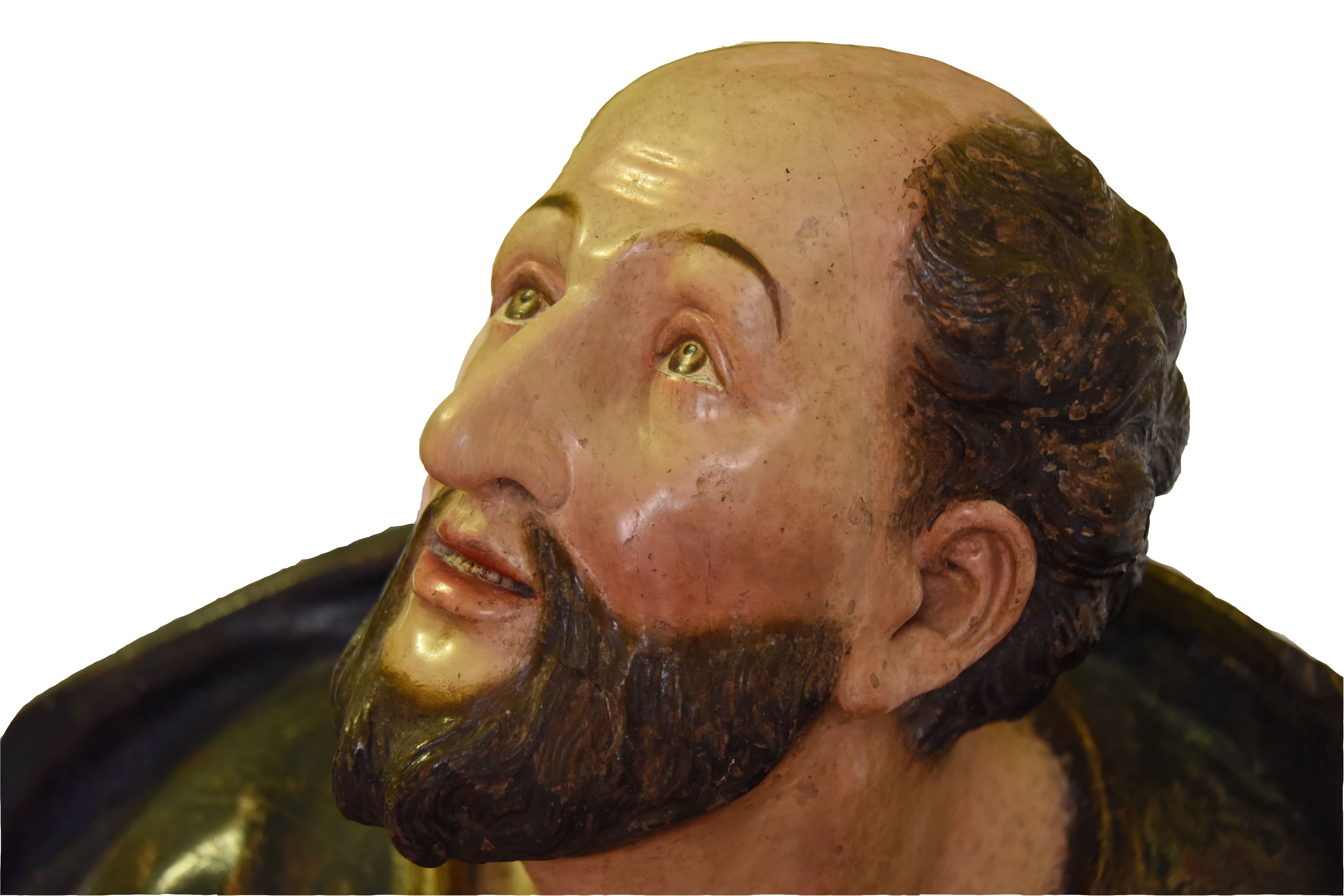 Habría sido parte del Altar del Santo Cristo, junto a la escultura de Santa Ana y Cristo crucificado, figuras que habrían sido fabricadas originalmente para la Iglesia de San Miguel. Después del gran incendio que la destruyó en 1769, fueron trasladadas a la Catedral.