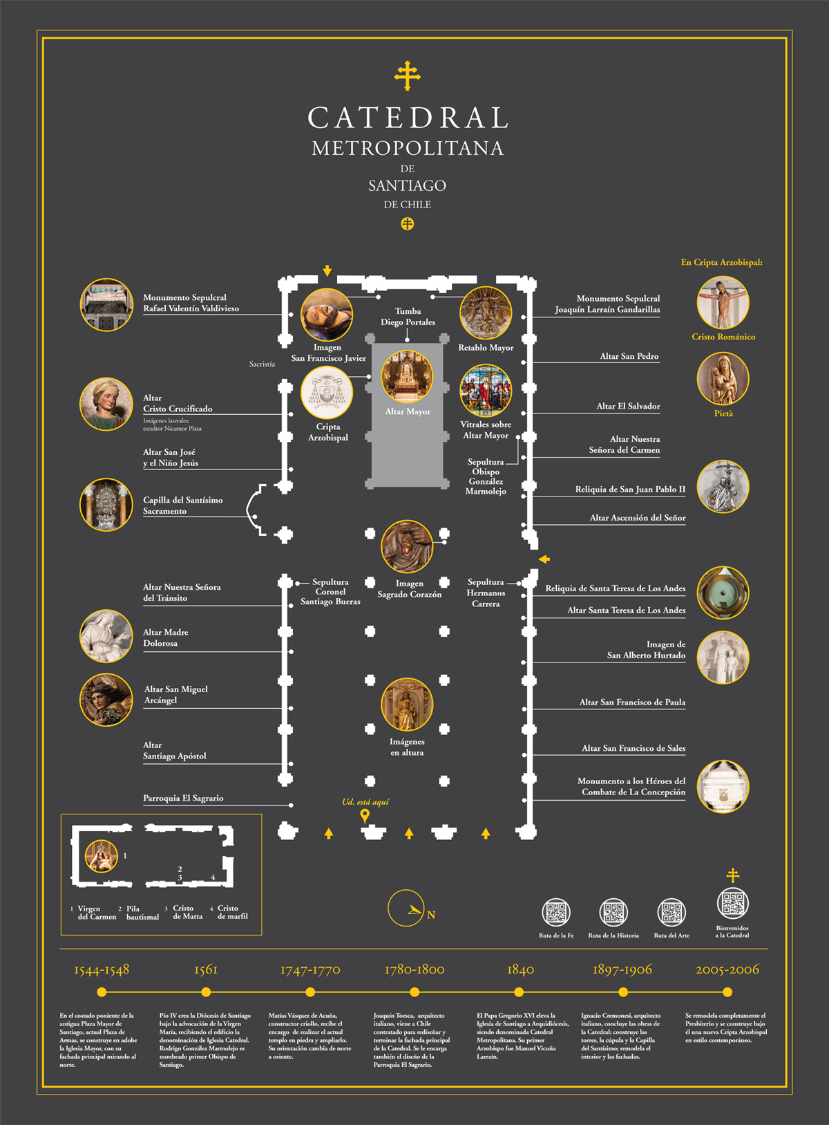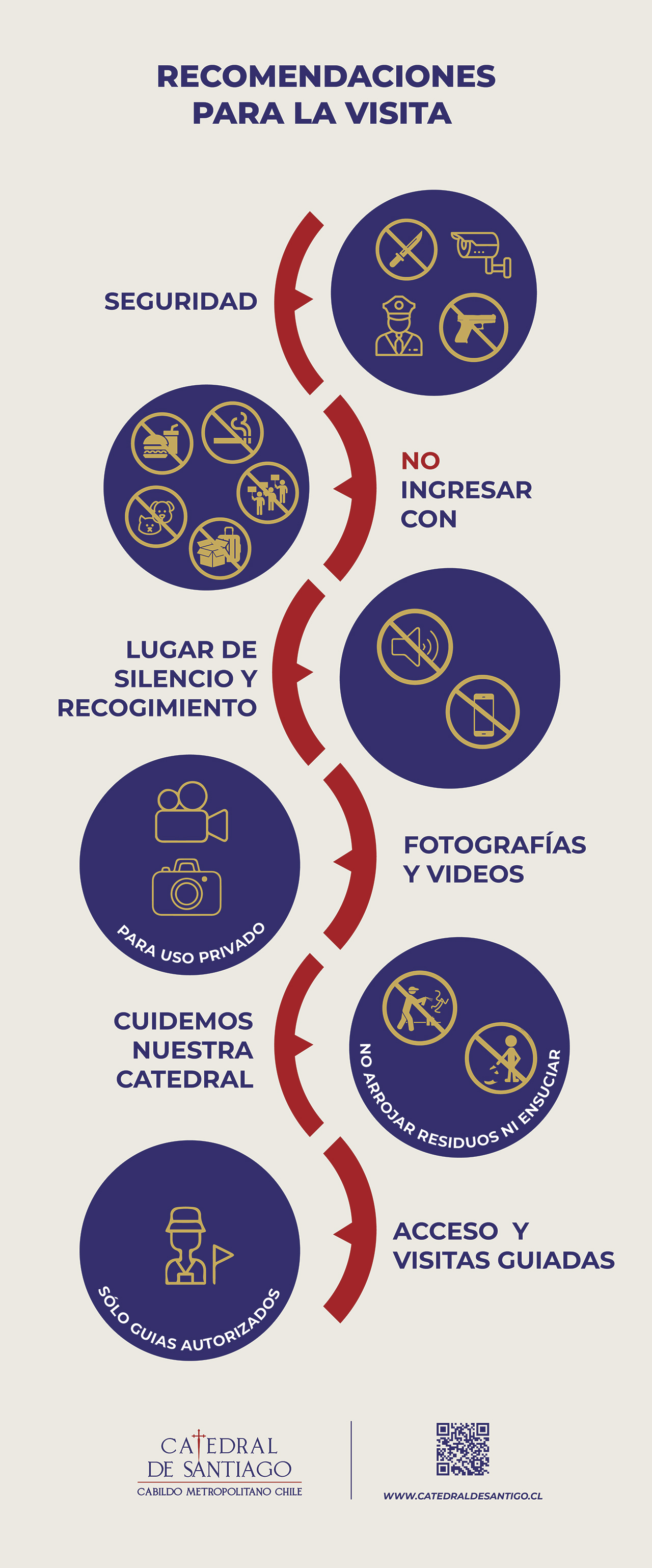 a Catedral Metropolitana de Santiago, es lugar de culto y oración. Visitada por miles de personas cada año, fue declarada Monumento Histórico, el 6 de julio de 1951. Para garantizar el recogimiento, el respeto y la seguridad de todos sus visitantes y trabajadores es importante cumplir con las siguientes normativas Ver infografía Revisar todas las recomendaciones